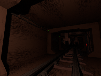 Dark abandoned cave with rusty robotic claws hanging from it's ceiling. Still, yet menacing, they have been accumulating rust for many decades, maybe even centuries. Their original purpose remains yet unknown.